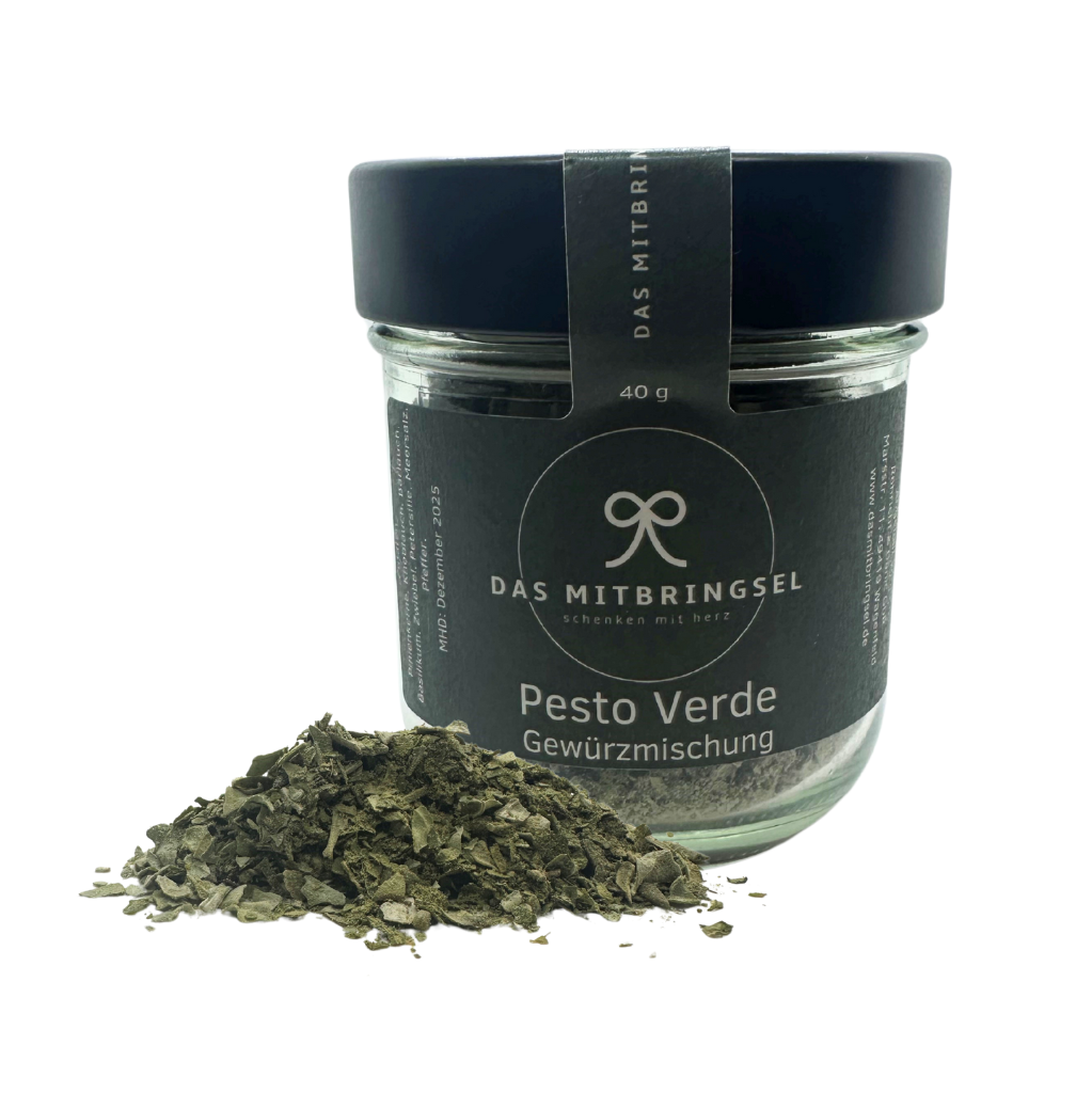 Unsere Pesto Verde Gewürzmischung vereint aromatische Kräuter wie Basilikum, Knoblauch und Petersilie für ein authentisches, mediterranes Geschmackserlebnis. Einfach mit Olivenöl und Parmesan vermengen, und schon entsteht ein frisches, grünes Pesto für Pasta, Salate oder Brotaufstriche. Perfekt für schnelle, aber raffinierte Gerichte.